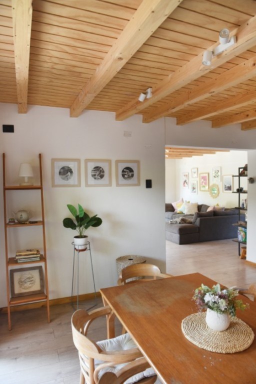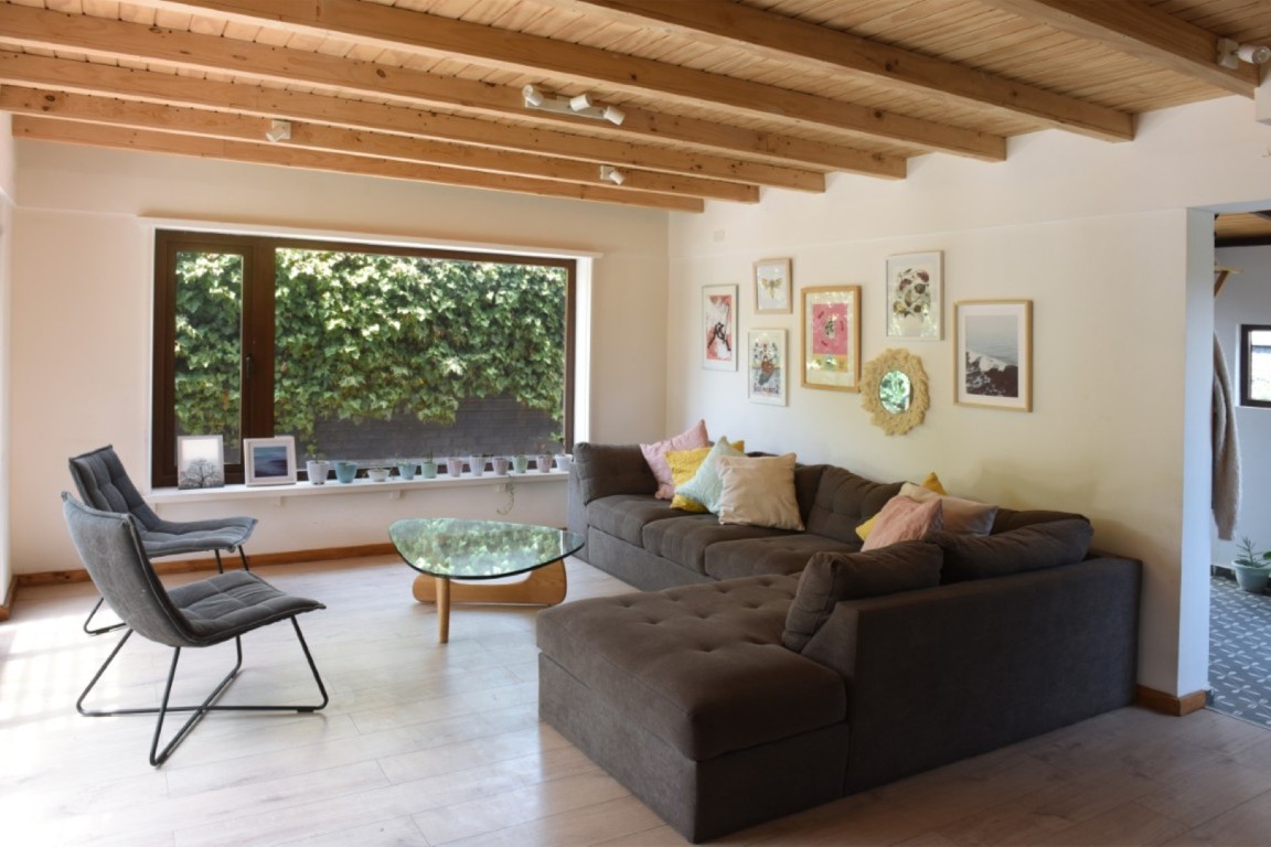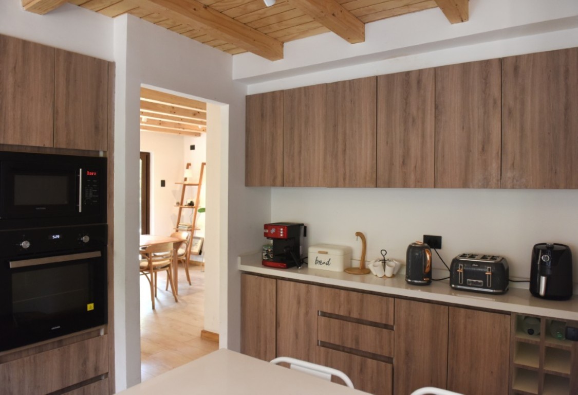 La casa fue remodelada profundamente, ventanas de termopaneles de PVC, vigas de madera a la vista en cielos, pisos de madera orgánica, cocina con pisos vinílicos SPC, mobiliario de cocina y baños modernizados, portón automático.