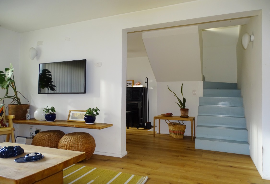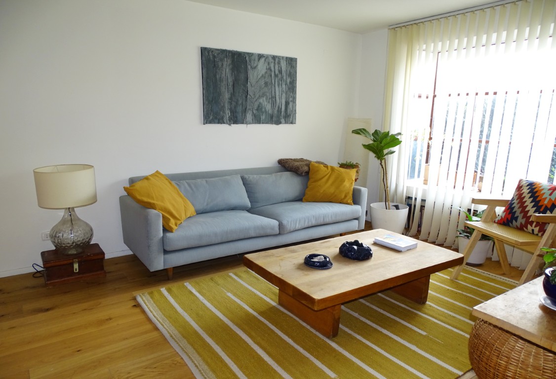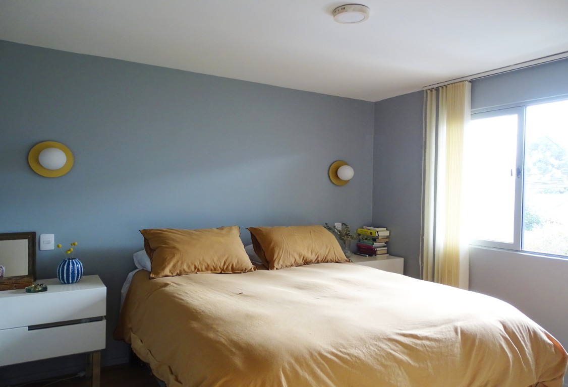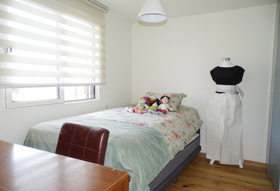 Sala de Estar luminosa, con vistas a la cordillera, puede pensarse como una tercera Habitación, cerrándola. 2 Dormitorios, principal con ventana oriente y closets, el secundario más pequeño, también con armario. Baño completo, remodelado, con ventana.