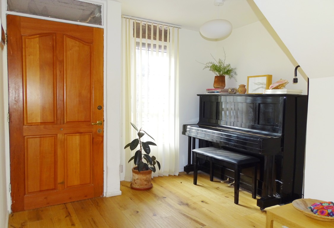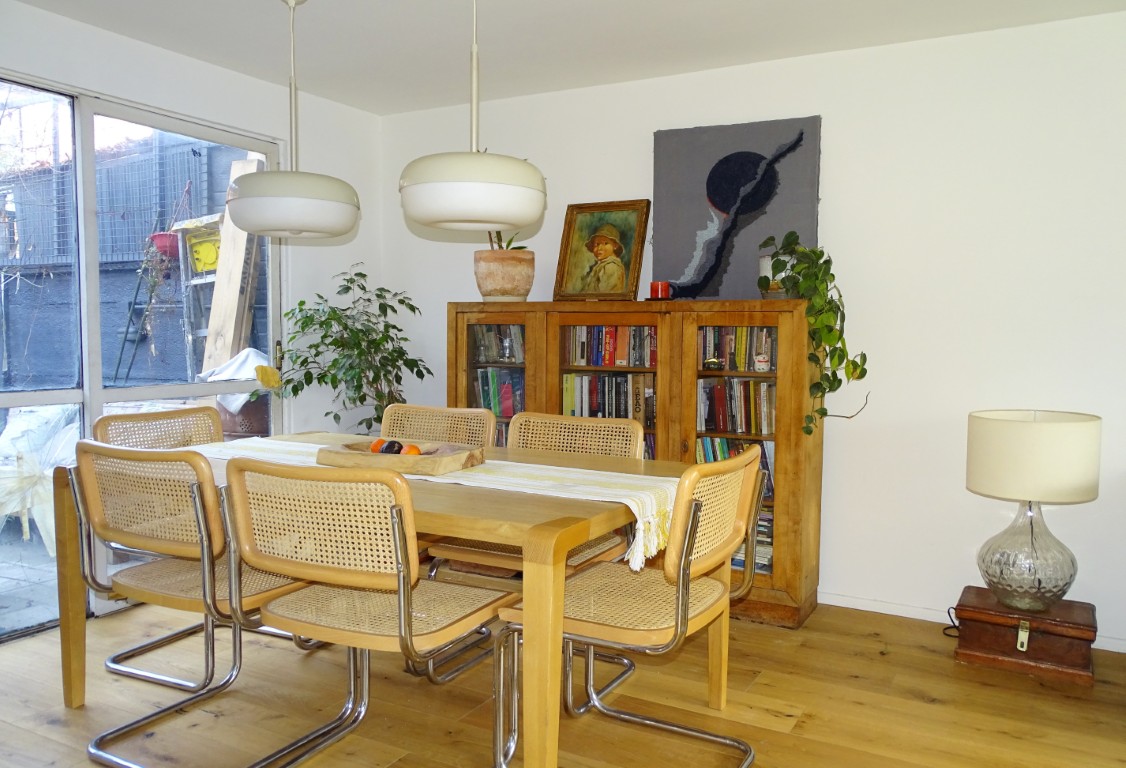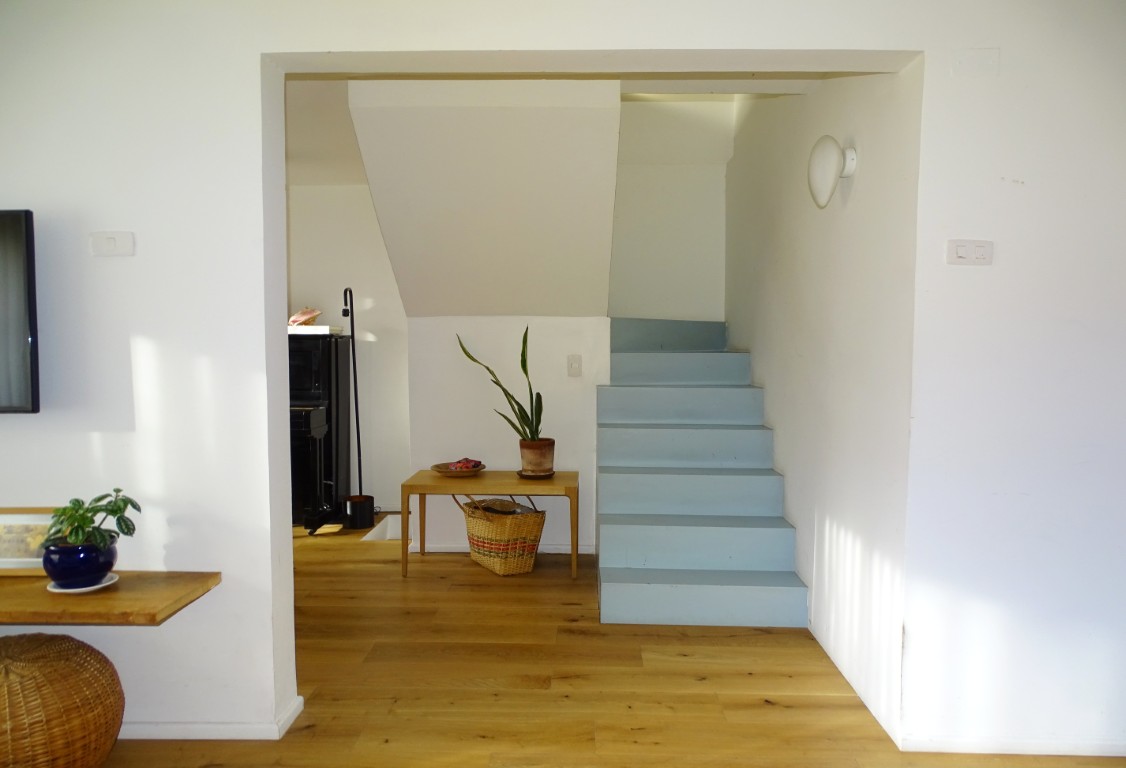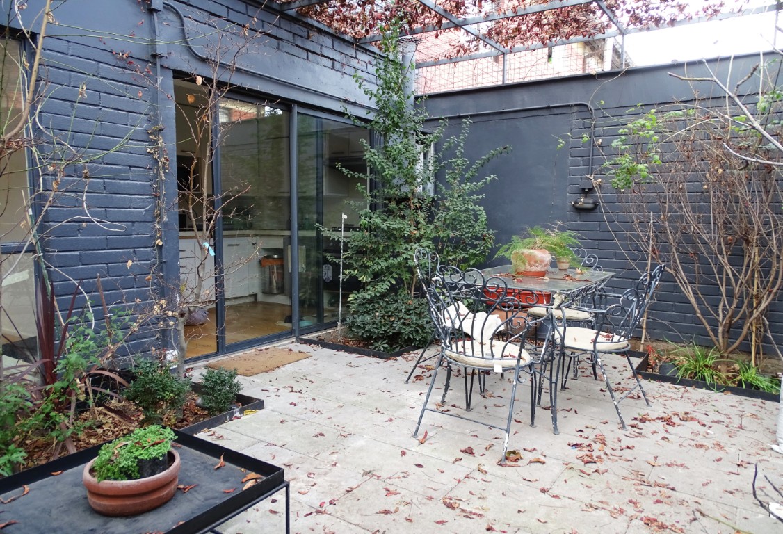 Se accede desde un holgado Antejardín, con espacio para estacionar. Hall de Acceso amplio, Baño de Visitas, bajo la escalera, remodelado. Living luminoso, volcado al oriente. Comedor amplio, con ventanales que dan al Patio Trasero. Cocina abierta, refaccionada. Patio duro, rodeado de plantas, acogedor, con espacios para instalar tanto un juego de terraza como un comedor exterior.
